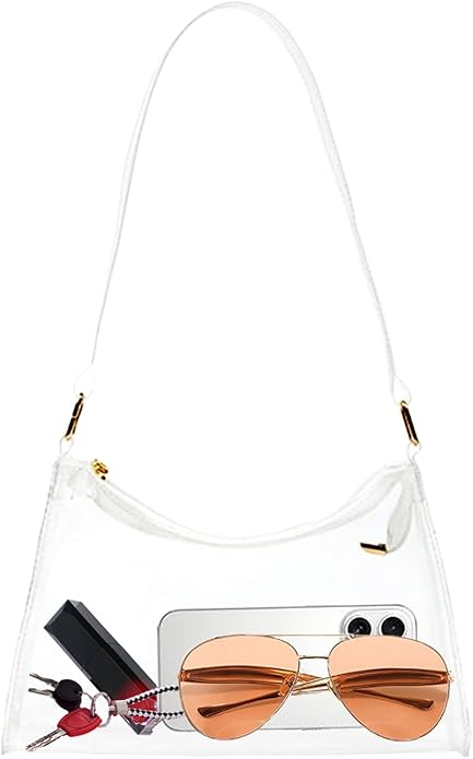 A transparent mini bag with a chain strap is one of those pieces that instantly makes your outfit more fun. It’s tiny, distinctive, and trendy without feeling costume-y. I usually keep just the essentials in it. These include lip gloss, cards, and keys. I wear it for nights out or when I want a small statement bag.