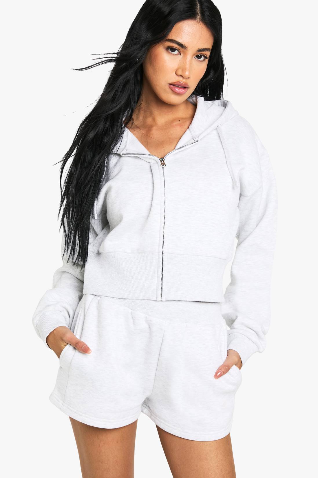 13. Sweat Shorts + Cropped Zip Hoodie
